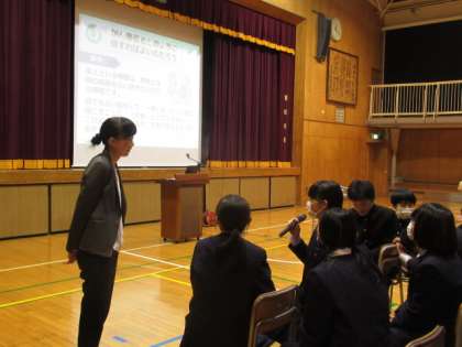 3年生は、がんについての学習を学年合同で行いました。講師は、関東中央病院の緩和ケア認定看護師の方です。3年生が、しっかりとした考えをもてることに驚いたと、感想を言われていました。