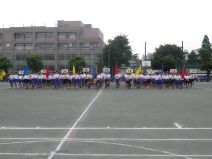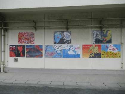 よいコンディションの中で、令和元年度の体育大会が始まりました。各クラスの応援デザイン画も選手を応援しています。