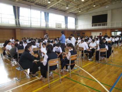 6月の土曜授業日は、1、2学年がゲストティーチャーによる授業を行いました。1年生は在宅医療にかかわる方々に来ていただき、「いのちの授業」を実施しました。2年生は、9月の職場体験に向けた第1歩として、キャリアコンサルタントによ「ビジネスマナー講座」でした。