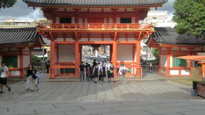 時折、強めの風が吹きますが、天気は快方に向かっています。朝食前に班長に注意を促し、ガイドさんに連れられて、全班予定どおりに京都の街に繰り出しました。
