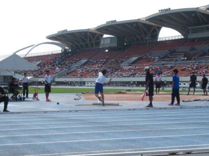 富士中生はトラックだけでなく、フィールド種目でも自己記録更新をめざしました。