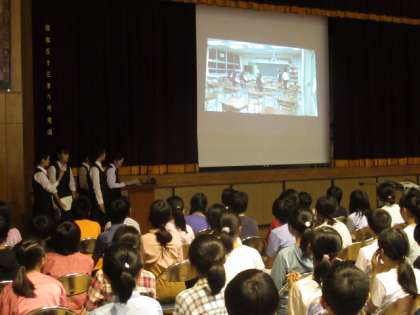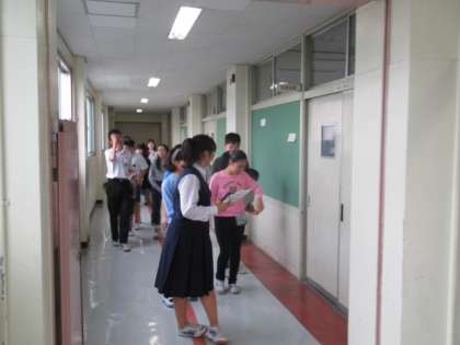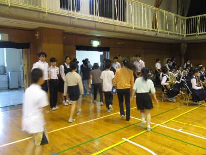 富士の学び舎の小学校6年生が来校し、本校の授業を見学しました。今年度から案内役を2年生にしました。来年度は最上級生と新入生という関係でかかわることになるからです。体育館では生徒会本部役員による学校説明を行い、上手なプレゼンテーションでした。