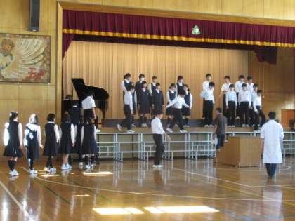 合唱コンクールのリハーサルを各学年、体育館で行っています。ステージの入退場や、クラス合唱、学年合唱の練習をしています。どのクラスもめざす合唱に少しずつ近づいてきました。合唱コンクール本番まで、あと3日です。