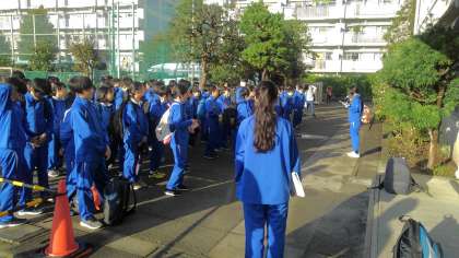 実行委員のあいさつで、1年生の移動教室が始まりました。バスの中はレクや歌で盛り上がりました。山頂まではっきり見える富士山が1年生を迎えてくれています。