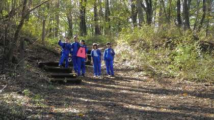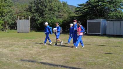 緑の休暇村のコースを使って、オリエンテーリングが始まりました。地図とコンパスを手に各班、ポイントを探しています。
