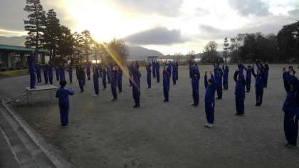 澄んだ空気、雲の上に浮かぶ富士山の頂、とても気持ちのよい朝を迎えました。全員元気に富士山五合目に向かいます。