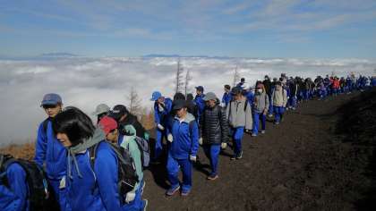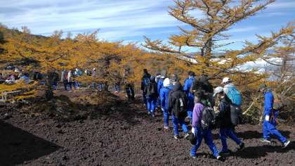 雲海を眼下に眺めながら、お中道を歩きました。遠くには八ヶ岳が望めます。これほどの好条件はめったにないことです。五合目の木の葉は黄金色に染まっています。