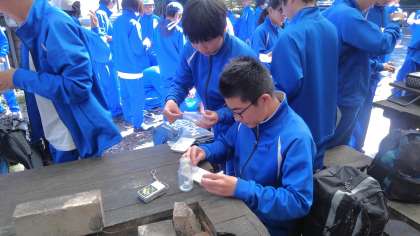 酪農体験の最後は、みんな揃って、バター作りです。出来上がったバターをパンに載せ、美味しい牛乳といっしょにいただきました。