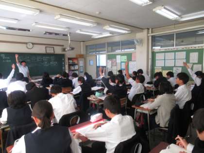 「輝き歩んだ70歩、新たに踏み出せ71歩」創立70周年の際に掲げた懸垂幕に見守られて1年が経ちます。定期考査が近づき、71歩目を踏み出している生徒たちは、今日もいつもと変わらず生活をしていました。