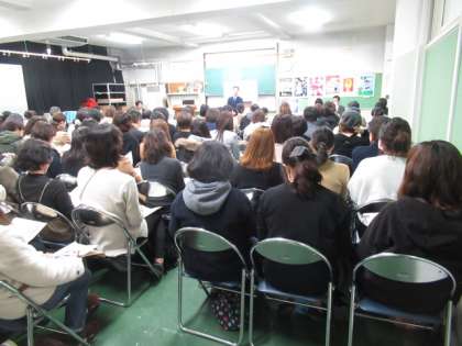2月14日(金)に新入生保護者説明会を行い、約100名の参加がありました。説明会前の5校時は授業公開とし、各クラスの生徒の様子も知っていただきました。