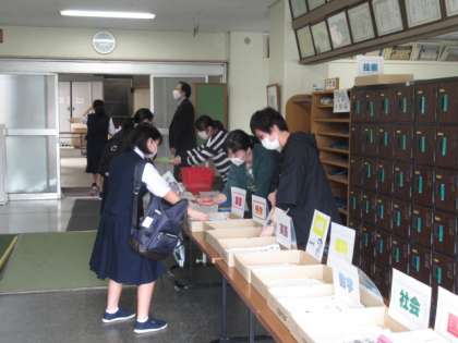 「年間の予定通りだったら、体育大会だったのに・・」先週末はずっとそう考えていました。資料回収・配布日も今日で3回目になりました。来週からの分散登校で、生徒が教室に戻ることに、今は大きな期待を寄せています。