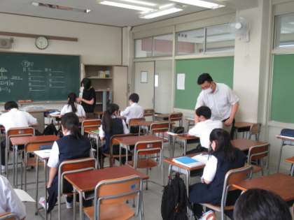 1年生は理科室で顕微鏡を使って微生物を観察する勉強をしていました。数学は分散登校中のティームティーチングなので、手厚い体制です。新企画のサテライト図書館は、さっそく利用した生徒がいて、新企画第2弾も誕生しました。「本の福袋」です。心がほっとする本が2冊、どんな本が入っているかはお楽しみです。