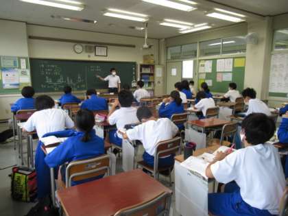 数学も英語も少人数授業が始まっています。すべての時間を教室に20〜25人程度の生徒数で授業を進めていきます。