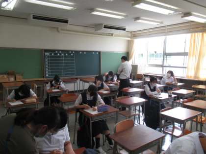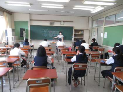 夏休み最後の週は、学習補充教室を行っています。これは、9月の定期考査に向けて授業スタイルで勉強する教室です。自分で参加する教科を選んで勉強しています。部活動の前の時間を利用している生徒もいれば、5日間、全教科に参加する生徒もいます。