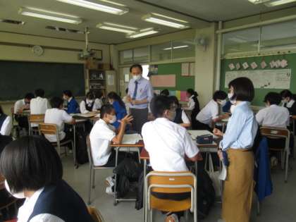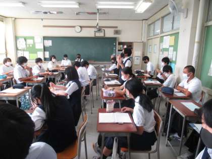 2年生の各学級で、研究授業を行いました。「生徒自身の思いや考えを共有する時間を設ける」ことを道徳の授業で研究しました。2年生は、話し合い活動が上手な学年です。授業後は、先生たちの協議会を行い、生徒に負けない話し合い活動をしました。