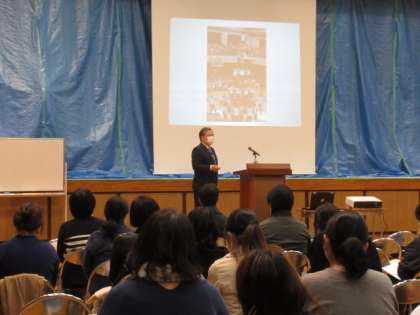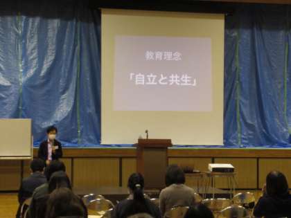 3年生保護者対象の進路説明会に引き続き、PTA成人教育委員会主催の高校説明会が行われました。都立高校と私立高校のそれぞれの特徴と魅力を知ろうという趣旨で、都立駒場高校、私立朋優学院高校の校長先生をお招きしてお話を伺いました。冷たい雨の1日でしたが、100名近くの保護者の参加がありました。