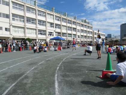 今年度の体育交流会は、全員リレーと大縄跳びの2種目です。全員リレーは緊迫した雰囲気の中、クラスカラーのバトンが次々と渡り、どの学年も好レースでした。