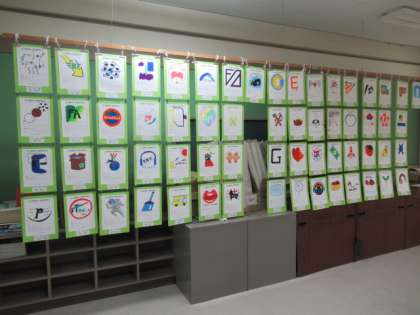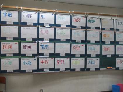 1月23日〜28日は作品展です。美術では、1年生は自分を表す色で名前のレタリングをしました。2年生の作品は「あったらいいな」と思う魔法の世界を描いたものです。3年生は休校中から取り組み始めた、自分が作る会社のシンボルマークのデザインを展示しました。