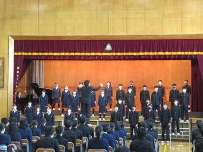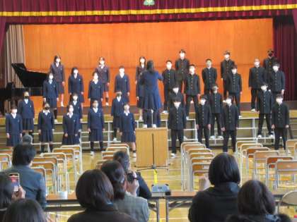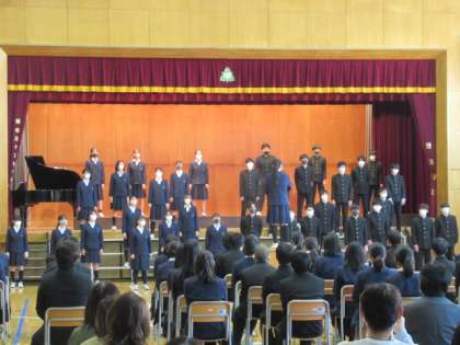 午後は3年生の発表でした。どのクラスも最上級生にふさわしい歌声でした。卒業式の分まで歌い切った3年生の合唱になりました。