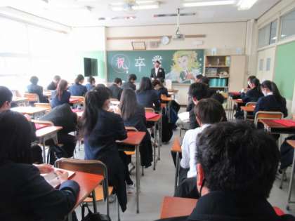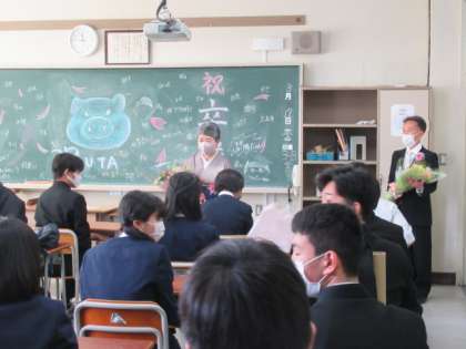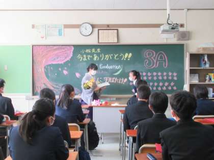 卒業式後の最後の学活では、担任や学年の先生に感謝の気持ちを伝えたり、担任から卒業生にエールを送ったりして、中学校での最後の時間が終わりました。
