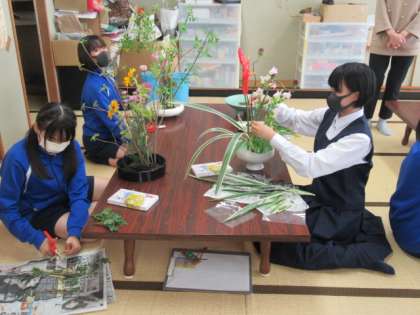 1年生の仮入部期間は今月末までです。美術部は人物デッサンを行っていました。数学部はパズル問題に取り組み、日本文化部は、実際に生花を扱っていました。