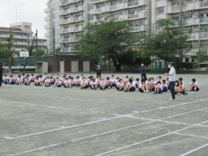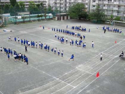 1年生にとっては、中学生になって最初の行事が体育大会です。小学校の運動会との違いがだんだんとわかってくることでしょう。1年生の大縄跳びは男女別に行うので、校庭では6か所に分かれて練習していました。