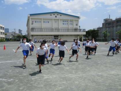 2年生の練習は活気と元気でいっぱいです。去年の体育交流会の経験が活きているようです。今日は雨になったので、体育館を使って大繩の練習をしていました。