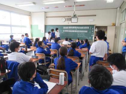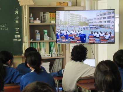体育大会前日は雨交じりの1日となり。校庭での練習はできませんでした。午後の準備はできるところだけを行います。昨日の予行練習以降は、撮影した動画を見て大繩跳びの修正箇所を確認したり、全員リレーの走順の見直しをしたり、応援手拍子をやってみたりと、クラスそれぞれが過ごしています。