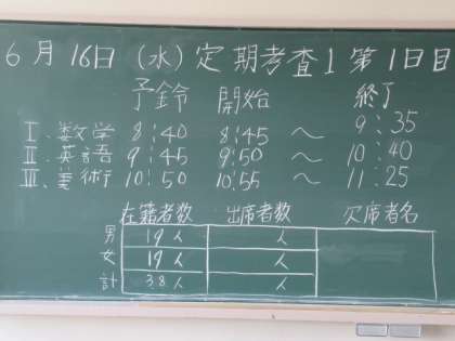 日本文化部の生徒が生けた花が、校長室に彩りを添えています。今日から定期考査が始まり、1年生にとっては、中学生になって初の経験です。