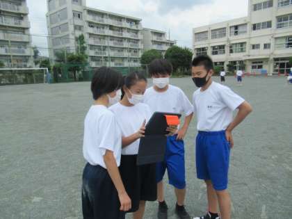 ipadを持つことで、生徒の学び方が大きく変わりました。体育の陸上の学習では、自分たちの中間加速までのフォームを動画に収め、チェックしていました。国語や英語の授業では、発表や対話の様子を見直すことで、よい点や直すべき点を実感することができます。
