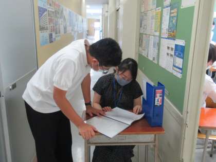 放送による終業式の後は、担任から通知表を受け取って、富士中の1学期が終わりました。自分なりの頑張りがたくさんあった1学期だったはずです。校長室には日本文化部が夏の花を飾ってくれました。みんなにとって、楽しく、充実した夏休みになりますように。