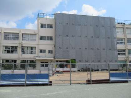 校舎の耐震工事が本格的に進んでいきます。校舎内への出入りは向かって左端の3年昇降口だけになります。ご不便をおかけします。