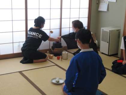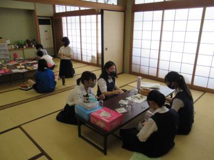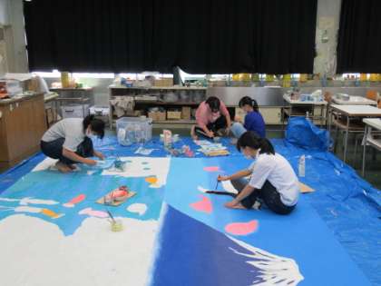 夏休みは文化部も楽しく、そして、よい緊張感をもって活動しています。合唱コンクールで披露する予定のビッグアートは、例年より早い進み具合です。和室では日本文化部が華道と茶道の取り組みをしています。