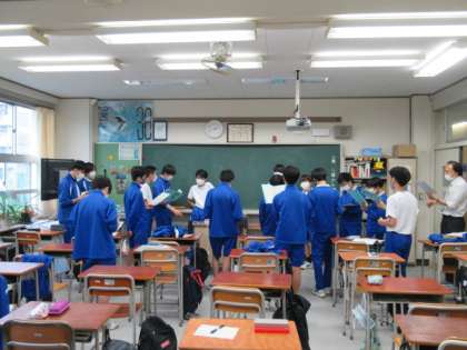 今週は、合唱コンクールの放課後練習が始まった週でした。月曜日には実行委員長がスローガンを発表し。生徒の気持ちに火が付いた感じです。どの教室からもパート練習の声が聞こえてきます。やはり、いち早く本気モードに入っていたのは3年生でした。
