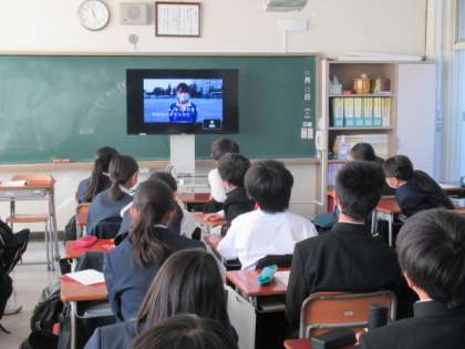 11月13日は、本校73回目の開校記念日です。3校時は、生徒制作の学校紹介動画を全員で視聴しました。富士中のよさが詰まった動画です。第一線を退いた各部活の3年生の部長からは、1、2年生に向けてメッセージが送られました。富士中の魅力はこれからもつながっていくでしょう。