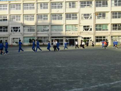 冬が近づき、火災が発生しやすい時期になります。月に1度の避難訓練は、今回は校内での火災発生を想定して行いました。校舎外にいち早く出ること、カーテンを開け、窓は閉めた方がよいことを伝えて実施しました。