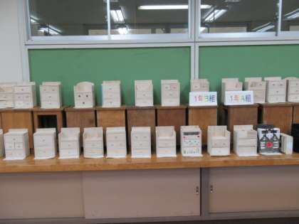 技術家庭科で作った作品は実用的な物です。家に持ち帰ったら、すぐに使えたり、大切に使いたいと思える作品が揃いました。