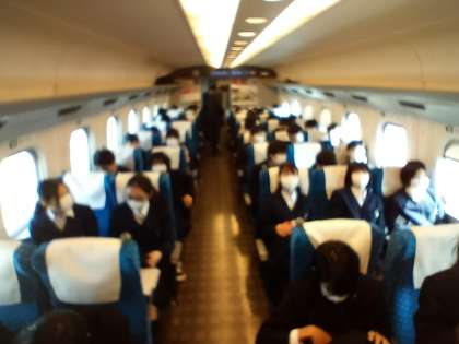 3年生は、1泊2日の修学旅行に出発しました。新幹線の車内は、座席を向かい合わせることはできませんが、みんなで楽しく過ごしています。