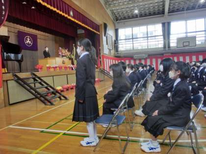 晴天に恵まれ、109名の新入生が入学しました。呼名では、緊張の中、大きな声で返事ができこれからが楽しみです。心身ともに大きく成長してほしいです。