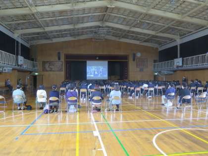 5月7日(土)1年生は、セーフティ教室を北沢警察署生活安全課のスクールサポーターを講師に招いてインターネット、スマートフォンの使用等に関わる問題の未然防止についてお話しをいただきました。その後、保護者の皆様と意見交換会を行いました。また、昨年度は、机上の訓練でしたが、本日は、災害時における引き取り訓練も行いました。保護者の皆様のご協力のもと各学年9割近い方々がお迎えに見えたことに感謝いたします。