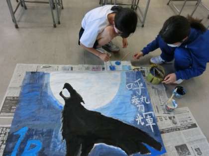 本日も放課後練習のあと、クラス模造紙で頑張っている生徒がいました。
