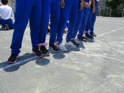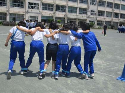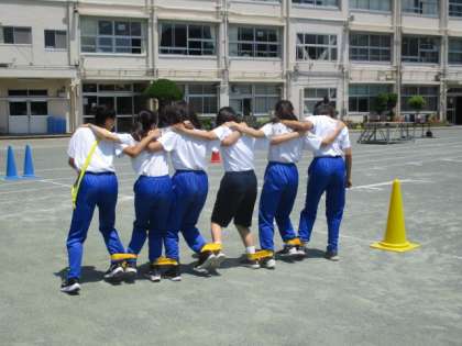 3人4脚、4人5脚、6人7脚、と人数を増やしながらたすきをつなぎます。