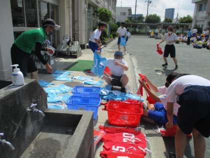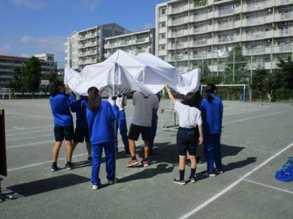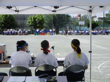 良く晴れた空の下、明後日にせまる体育大会の予行が実施されました。
