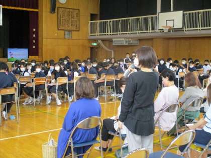 オリエンテーリングでの協力、キャンプファイヤーでの盛り上がり、氷穴の涼しさと自然を守っていく大切さ、実行委員への感謝、バス内での出来事など、テーマは様々でしたが、移動教室での様子や感じたことが聞いている人にわかりやすく伝えられていました。最後には、保護者の方からも「移動教室での様子がよく伝わりました」との感想をいただきました。