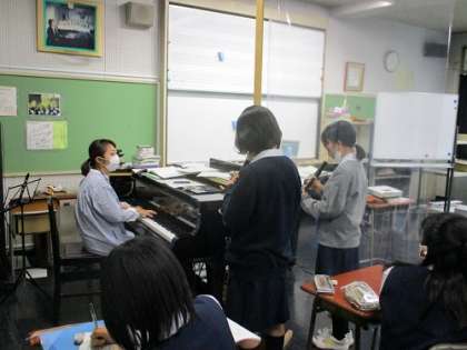 コロナ禍においても「学びをとめない」「生徒の活動の機会を減らさない」、音楽科の工夫と情熱が表れています。それに応えるように、生徒もポイントをおさえ、上手に演奏をしていました。