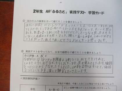 アルトリコーダーで、「ふるさと」を演奏するテストが行われていました。