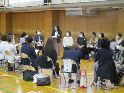 参加してくださったのは、富士中、代沢小、多聞小、池之上小のPTA役員、各町会の代表者、民生児童委員、学校関係者評価委員、関係諸機関の方々など、日頃「学校」を見守ってくださっているまさに、オールスターメンバーです。そこに各学校の教員が加わって、PTA,防災、生活、とグループに分かれ、情報交換、意見交換をしました。