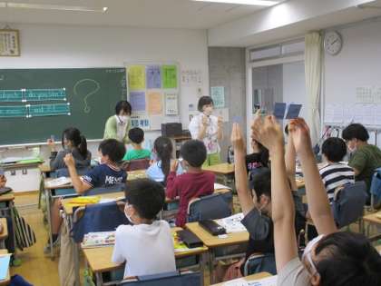 テストが終わった昨日の午後は富士の学び舎(富士中・代沢小・池之上小・多聞小)の先生方が、多聞小学校に集まり、5時間目の授業を見学させてもらいました。
