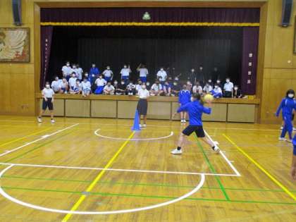 今日は、女子の部。1A 対 2Aの試合は、なんと1Aが圧倒的大差で勝利!1B 対 2Bの試合は、引き分け。決勝じゃんけんの末、1Bが勝利しました。先輩にも遠慮しない、積極的な姿勢が光る1年生でした。