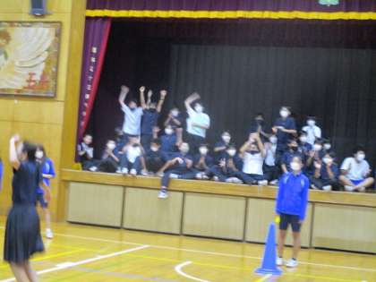 試合後には、3年生と1年生が円陣を組む姿も見られ、今回の生徒会の目的、「他学年との交流を深める」は見事達成されました。生徒会本部のみなさん、ありがとう!